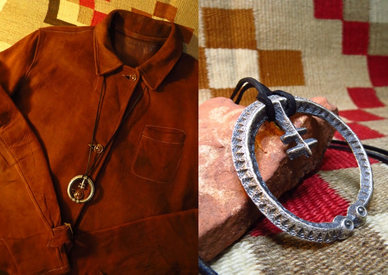 またこちらの作品では、ラウンド型に近いナジャのシェイプを再現してもらっており、1800年代末~に見られるような先端に開きがない造形です。それらのディテールにより、ナバホのとても古い作品を想起させ、アイウェアがフッキングできるようになっています。