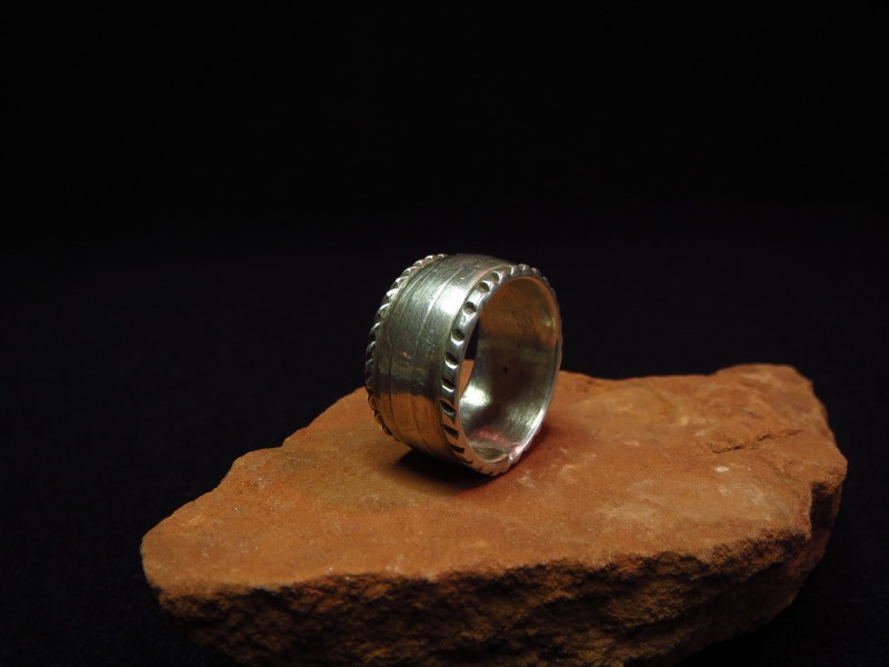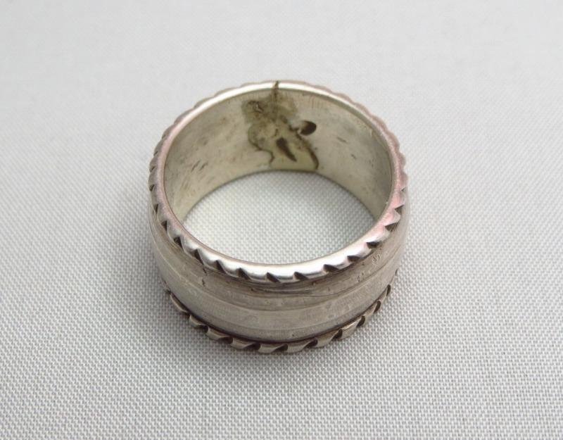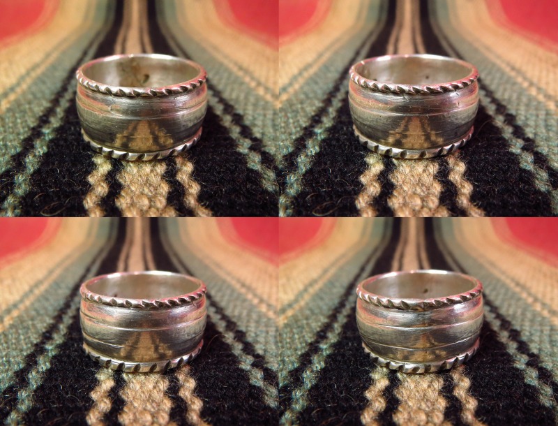 こちらのようなリングは、インディアンジュエリーの創始者の一人で、1870年代にズニ族に初めてシルバーワークを伝えた人物とされる【Atsidi Chon】によって1880年代に制作された作品がその起源と考えられます。 それは、Larry Frankの著書『INDIAN SILVER JEWELRY OF THE SOUTHWEST 1860-1930』にも登場し、インディアンジュエリーのスタイルの一つとなりました。